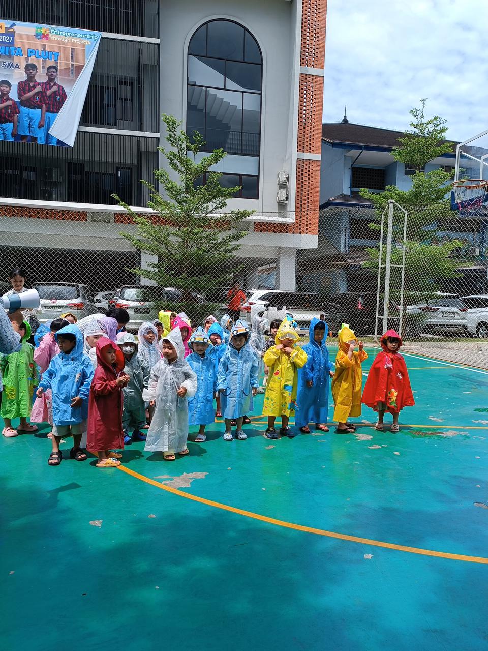 Setelah puas bermain, mereka kembali kompak berteriak, “Tutup air!” menandai berakhirnya kegiatan penuh keceriaan hari itu.